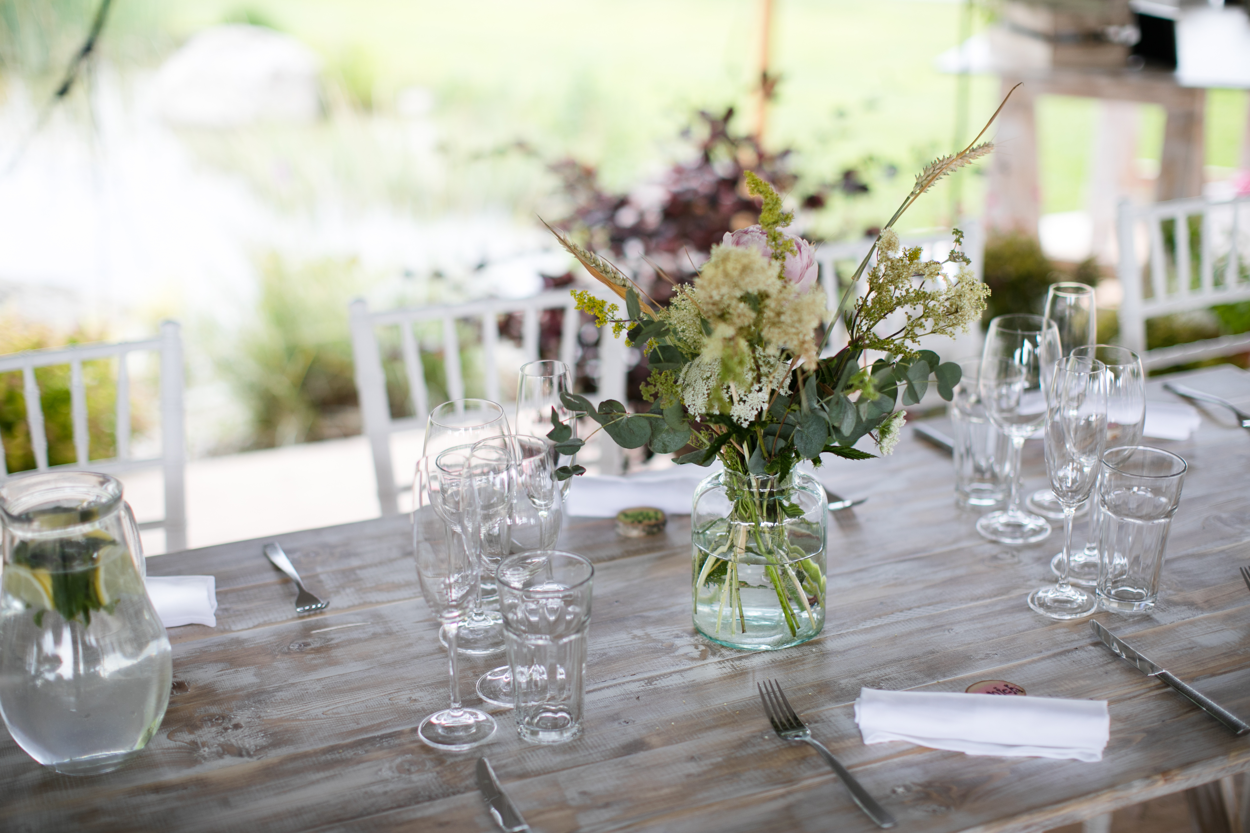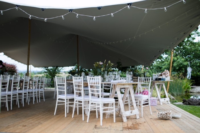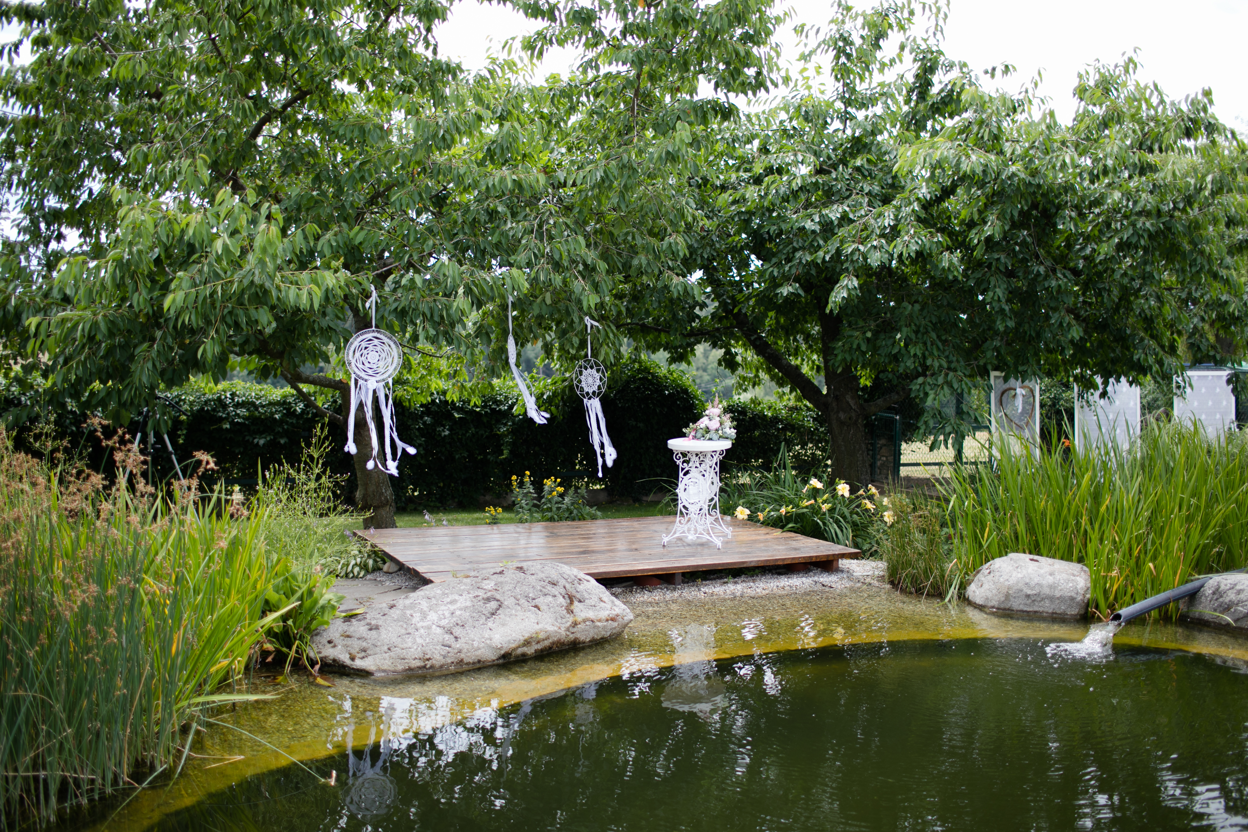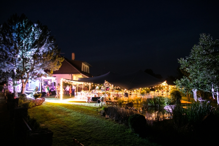 Naplánovali a objednali jsme vše od oznámení, přes květiny až po catering. U této svatby pro nás byla výzva postavit stan na nerovném terénu, uprostřed zahrady plné překážek v podobě okrasných keřů či jezírka. Nejsme však žádní začátečníci a dobře víme co děláme, na výsledek se můžete podívat v galerii.