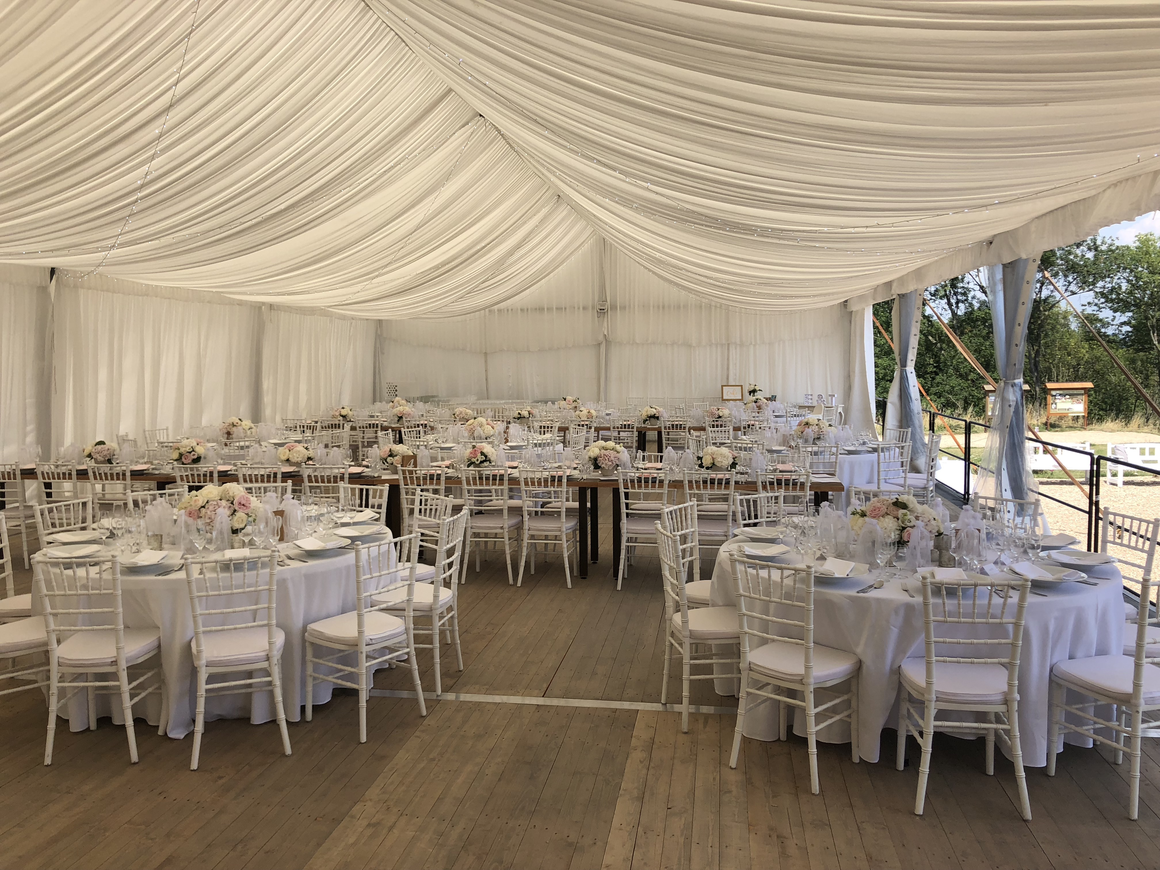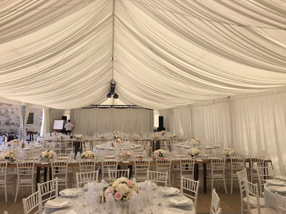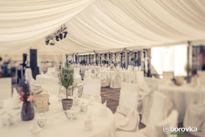 Chcete se svými hosty cítit jako na zámku? Celý stan zakryjeme baldachýnovou dekorací. Ta je spolu s podlahou v TOP kvalitě, a tak se Váš sen o dokonalém designu stává již nyní realitou.